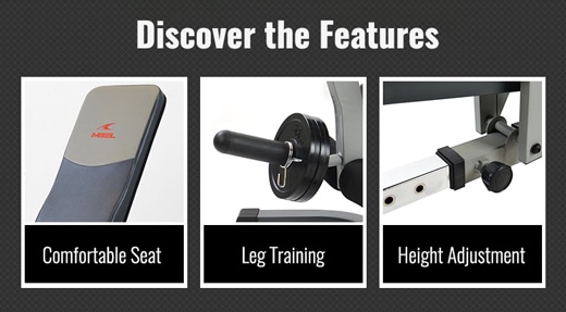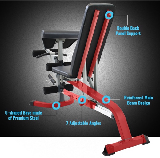 - All-in-one for bench pressing, butterfly and leg raise & preacher curl