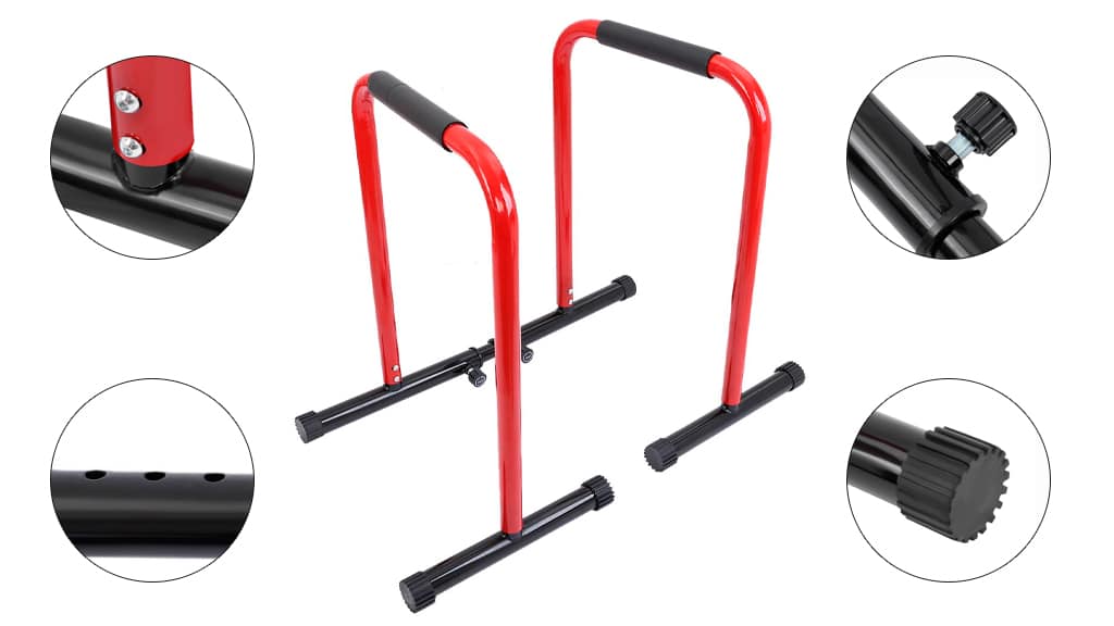 The height and width of this dip bar can be adjusted and is suitable for any height, body shape, and different training methods.