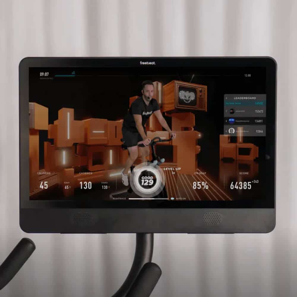 Cycle to the beat of the Freebeat Lit Bike for fun, immersive, and effective studio cycling and strength training sessions!