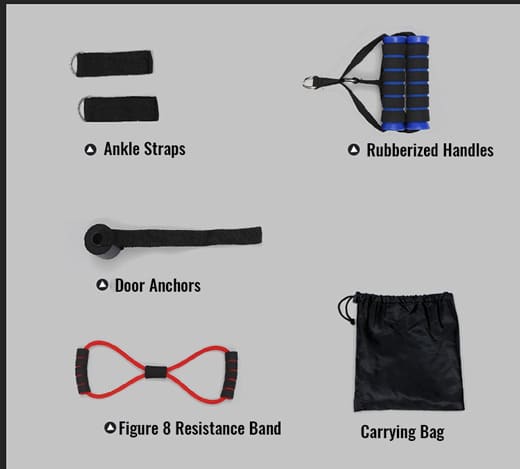 Very good range of resistance bands and accessories. All the resistance equipment you need in one product.