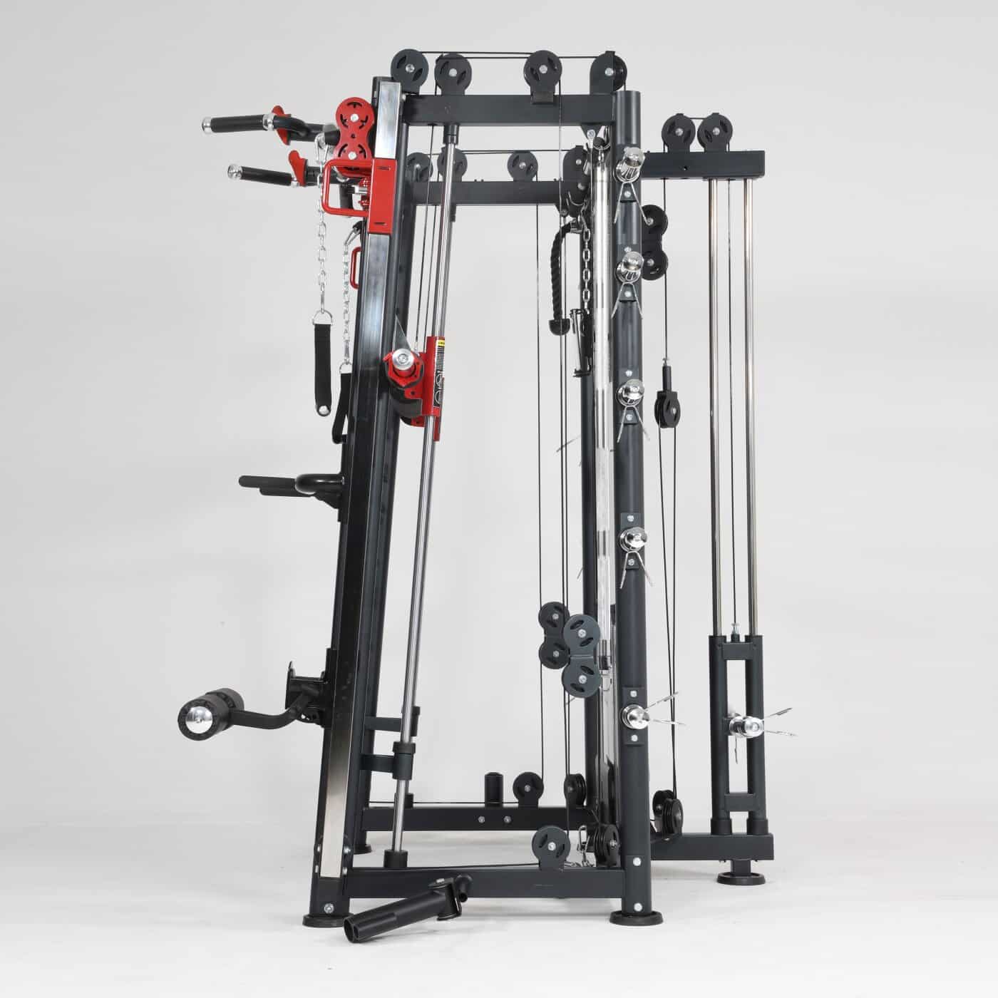 This machine is designed to elevate your fitness routine to new heights. With features including Smith squat, chest flies, seated rowing, barbell twist, push-ups, pull-ups, etc.