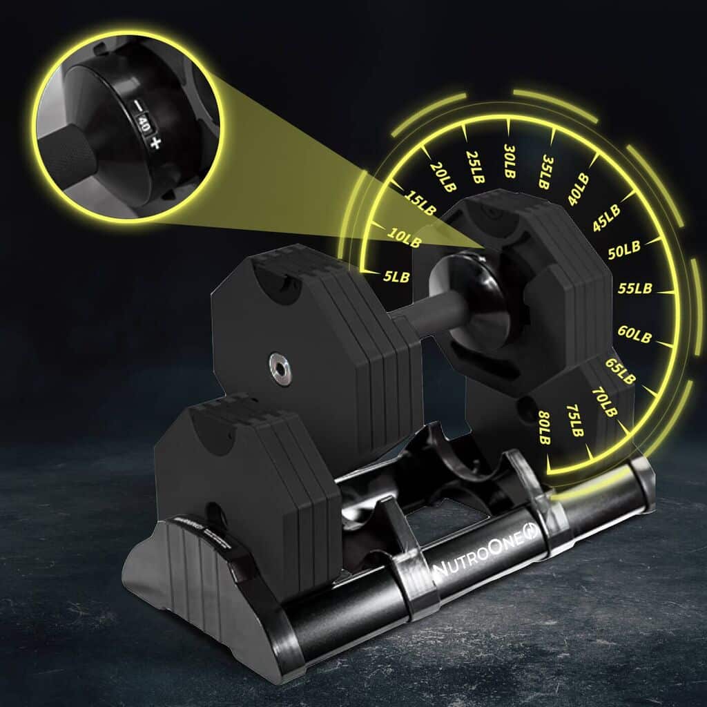 - Adjustable from 5lb to 80lb in 5lb increments to fit different workouts
