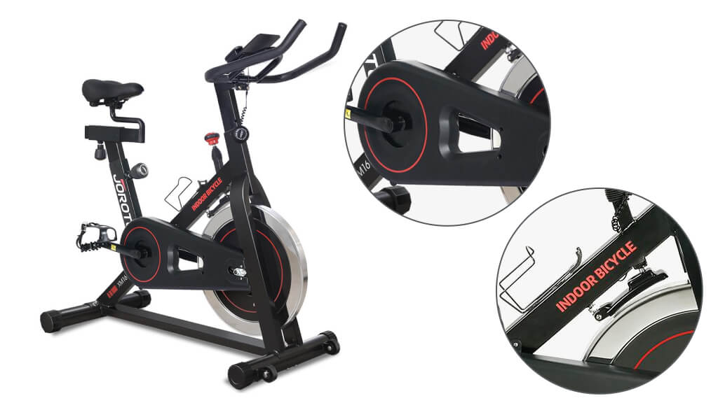 The frame of this JOROTO XM16 indoor bike is made with high-quality, heavy-duty steel. The sturdy construction allows suitability for people up to 280 pounds. With the solid chromed bi-direction flywheel, this exercise bike ensures you are stable and avoids jolting as you ride.