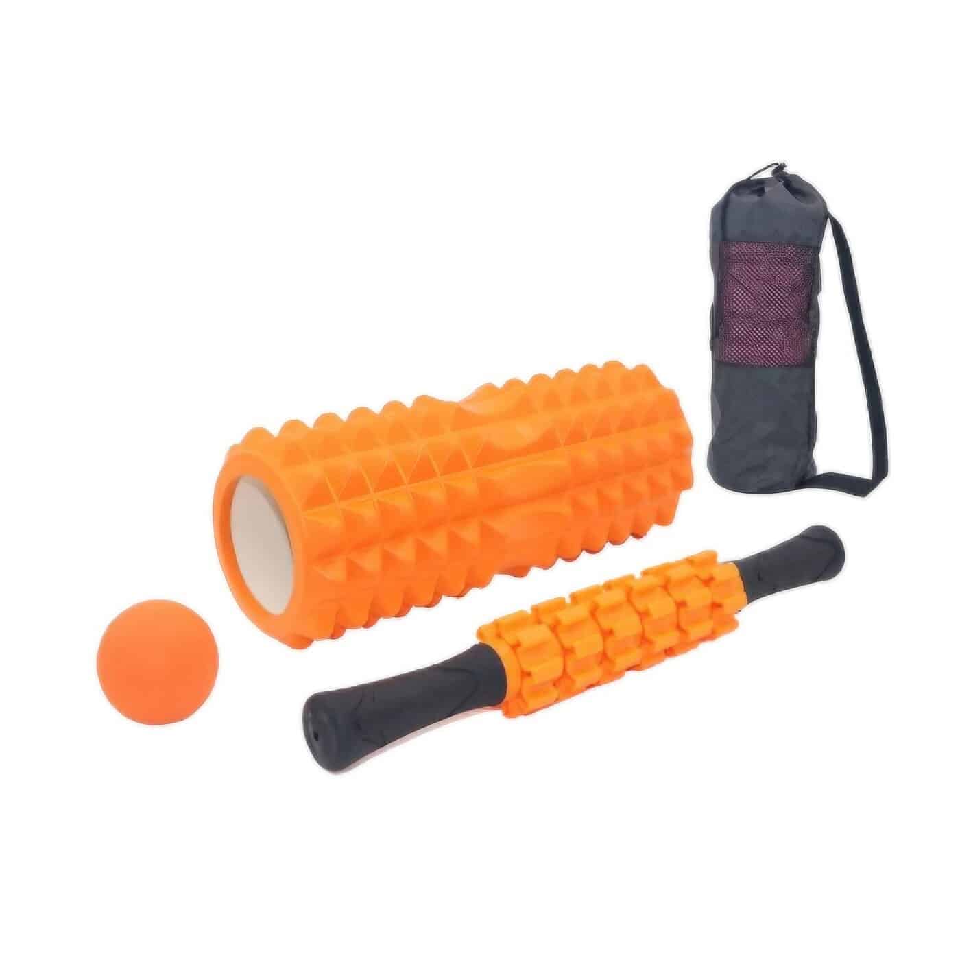 一套解決全身按摩包括瑜伽柱、按摩棒、筋膜球和網袋