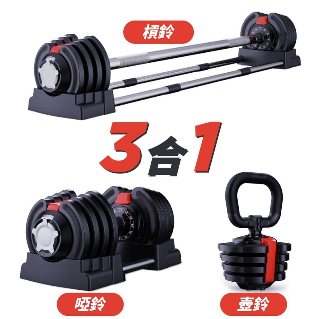 | 選項 | 三合一, 二合一 (啞鈴+桿鈴), 單一啞鈴功能 |