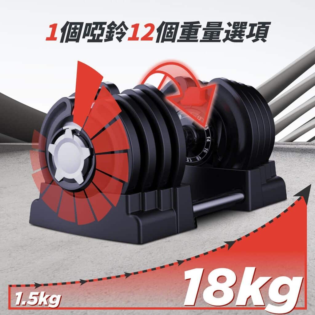 - 啞鈴重量:3 磅 – 40 磅 / 1.5 公斤 -18 公斤